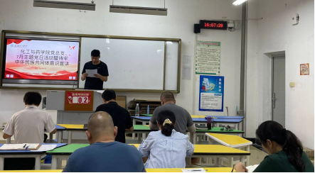 2024年7月22日,化工与药学院党总支开展了7月主题党日活动暨铸牢中华民族共同体意识宣讲会。学院班子成员、党总支各委员、各支部书记等参加了会议。会议由党总支书记李立威主持。